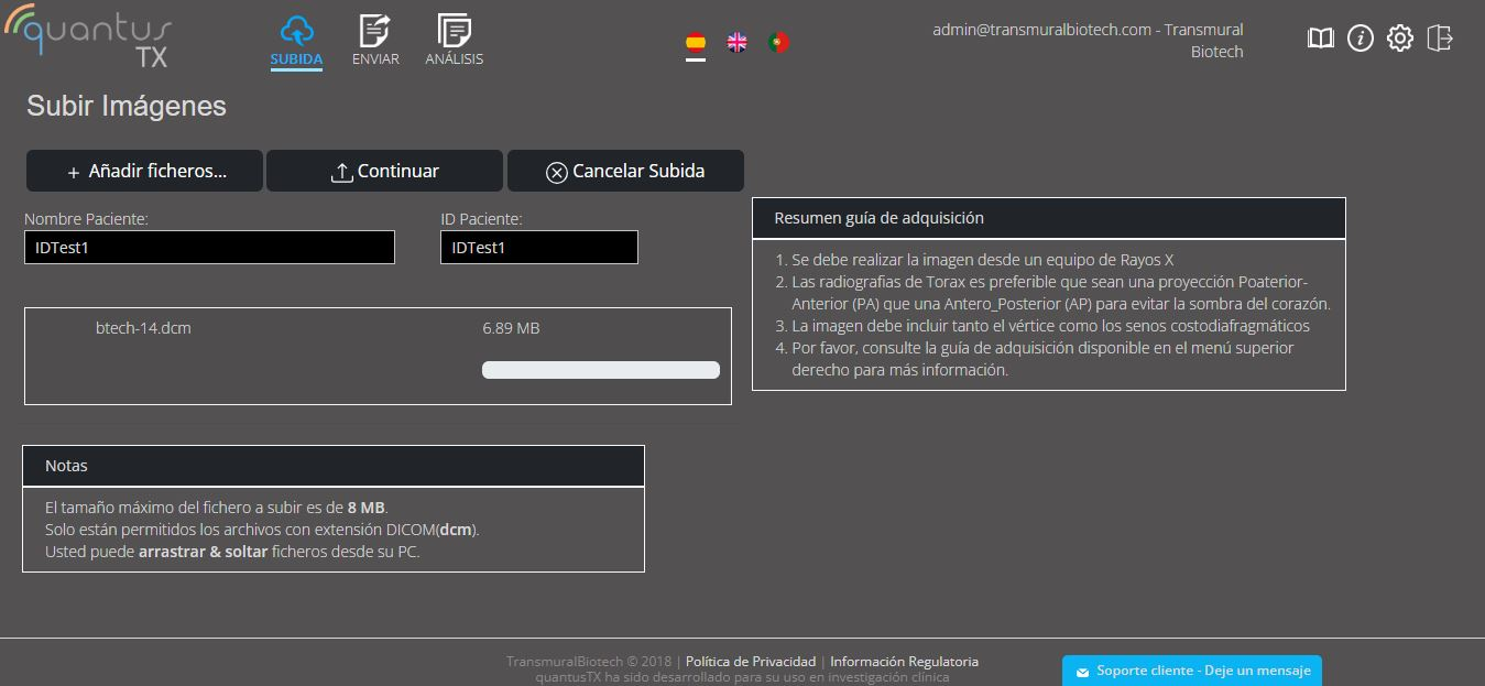 quantusTX no es capaz de detectar automáticamente si la imagen adquirida es correcta, es responsabilidad del usuario la correcta utilización del aplicativo, para más información sobre la adquisición de imágenes puede consultar la siguiente guía.