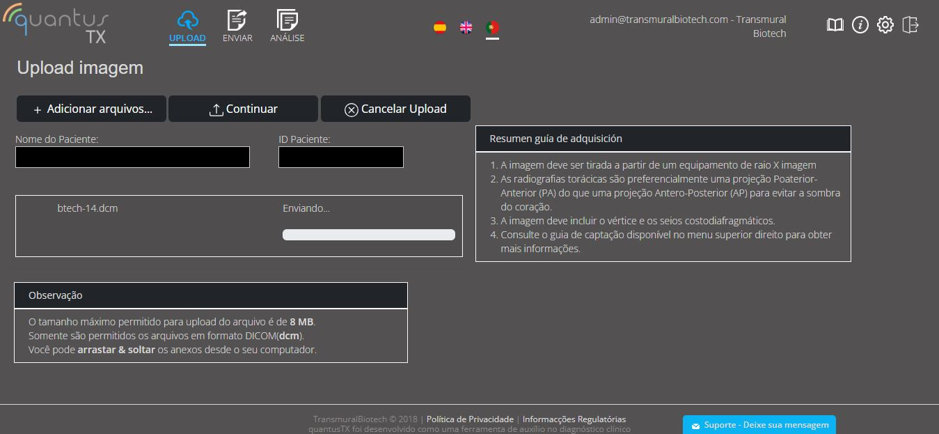 quantusTX foi desenvolvido pela Transmural Biotech S.L. que é uma empresa que tem como foco o desenvolvimento de tecnologias médicas baseadas em técnicas de processamento de imagens. A Transmural Biotech S.L é uma empresa certificada pelo ISO 13485. Para mais informações acesse www.transmuralbiotech.com ou entre em contato conosco pelo info@transmuralbiotech.com
